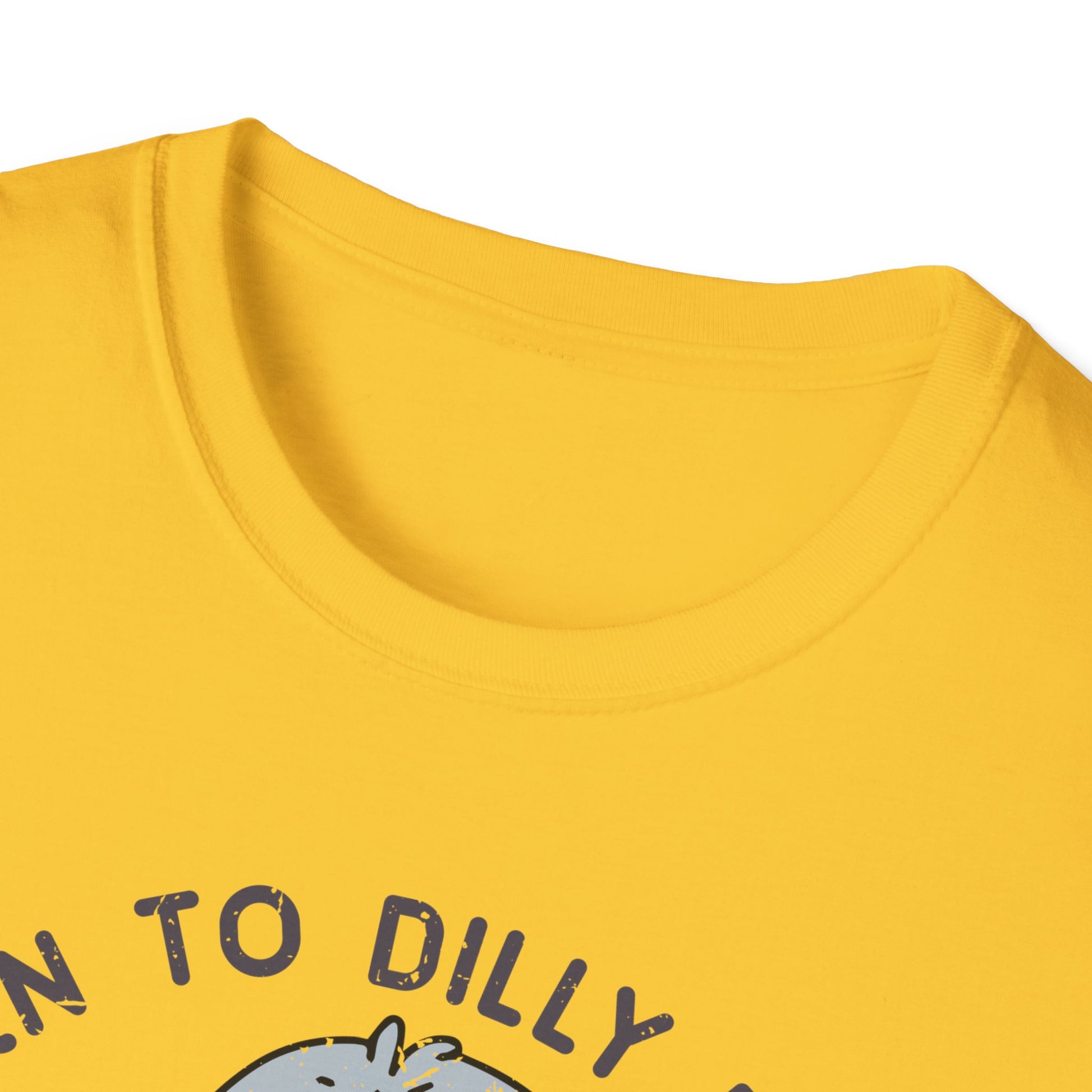 A playful and casual tee shirt designed for those who love to dilly dally. This soft and durable unisex T-Shirt is perfect for everyday wear, adding a touch of fun to any outfit. Ideal for adults looking for a comfortable and stylish shirt to express their laid-back personality. Suitable for casual outings, vacations, and leisure activities.
