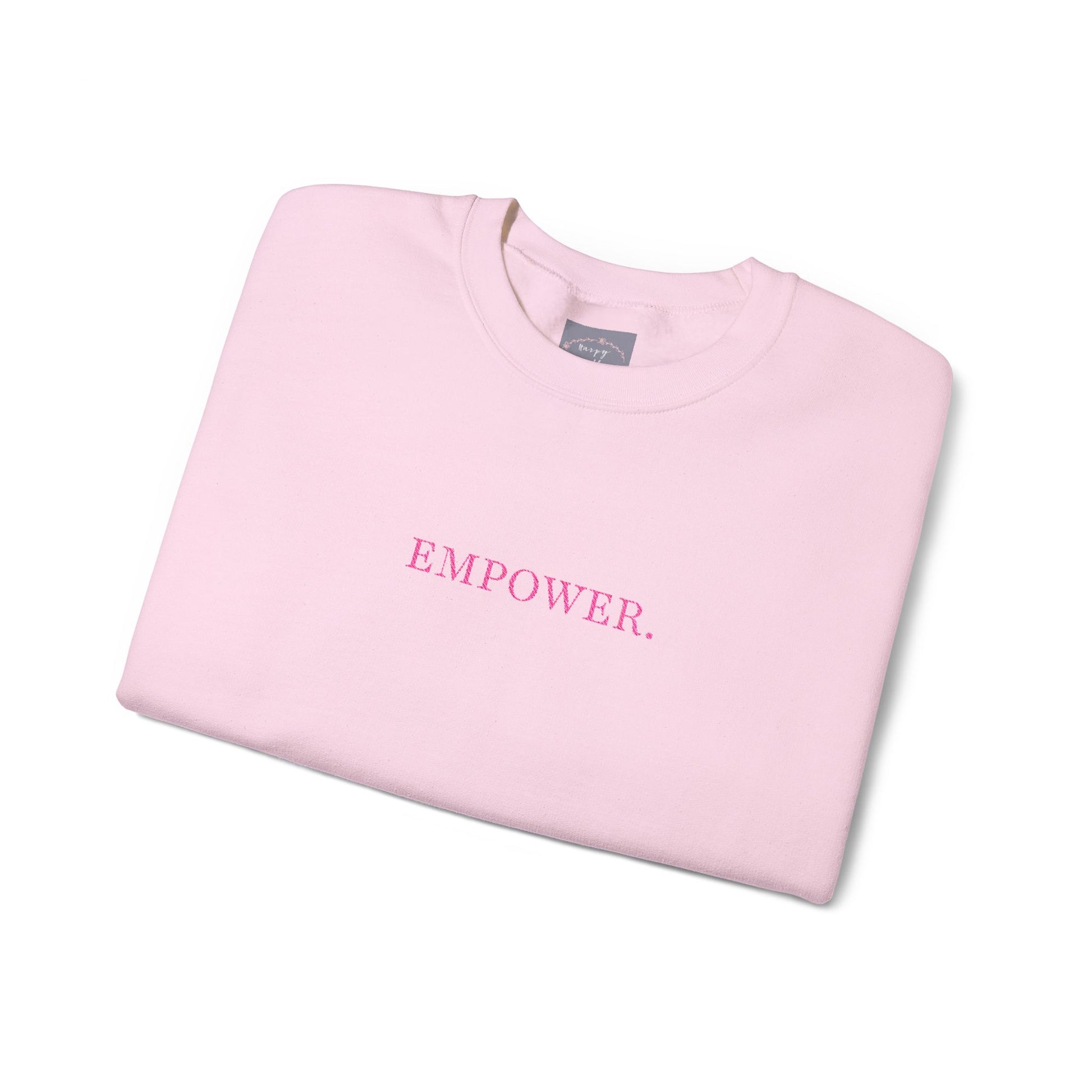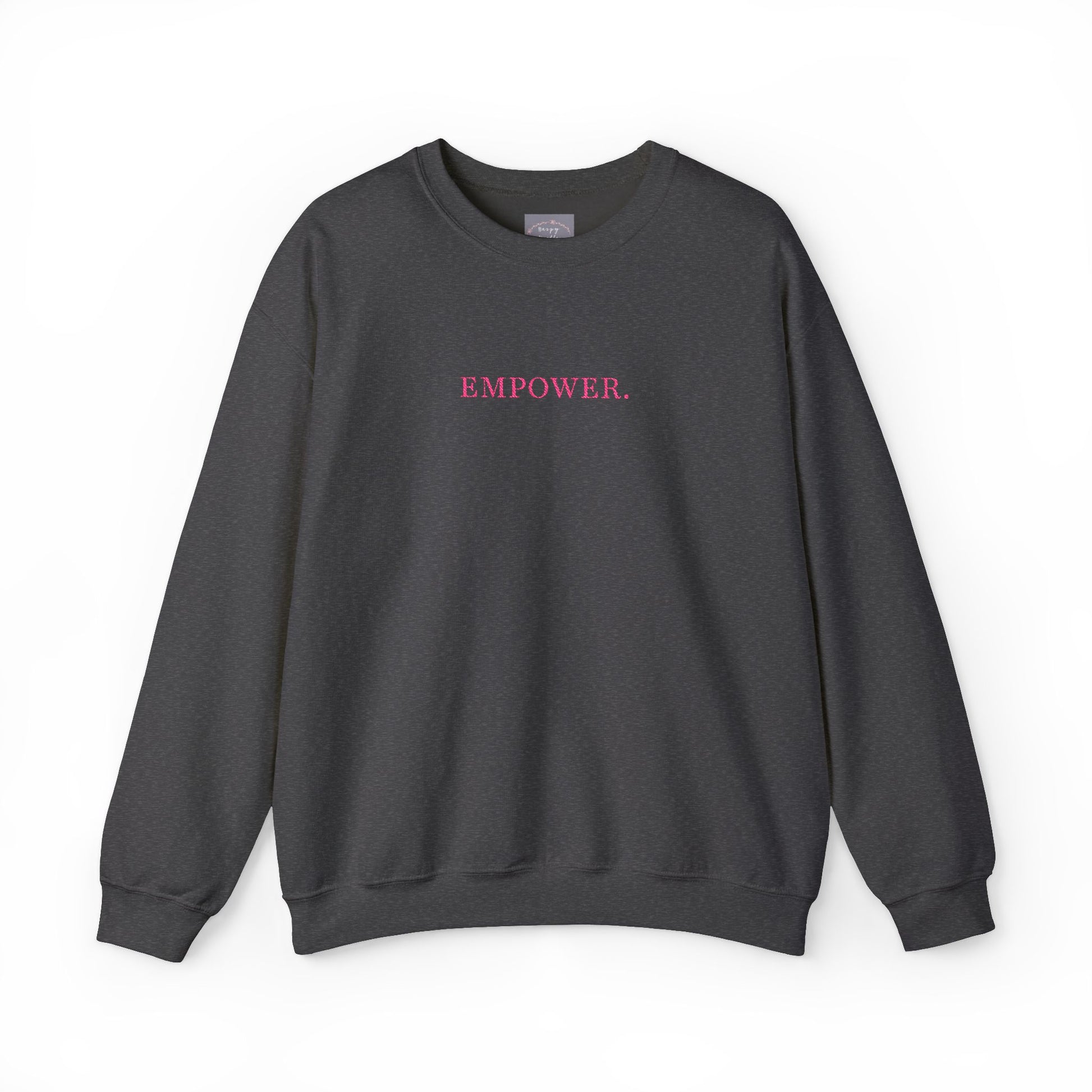 Empower! Heather Grey Crewneck Sweatshirt — Minimal Pink Text Empowerment Pullover